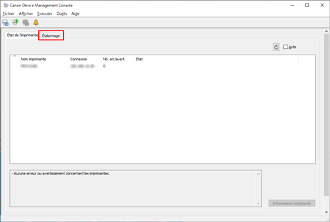 Dans la liste des imprimantes, sélectionnez l'imprimante pour laquelle vous souhaitez consulter le journal d'exécution de l'étalonnage des couleurs.