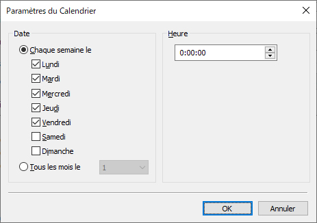 La boîte de dialogue Paramètres du Calendrier s'affiche.