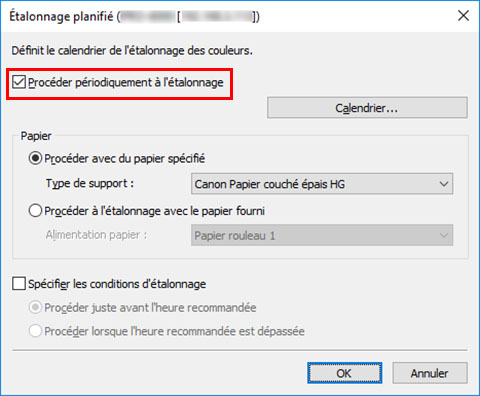 Cochez la case Procéder périodiquement à l'étalonnage et cliquez sur le bouton Calendrier.