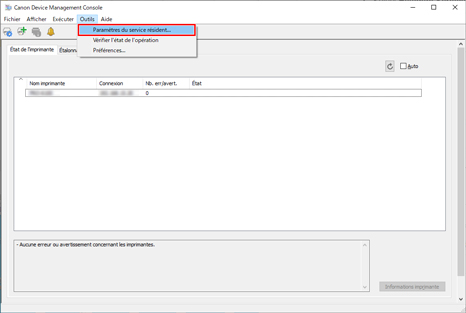 Sélectionnez Paramètres du service résident dans le menu Outils.