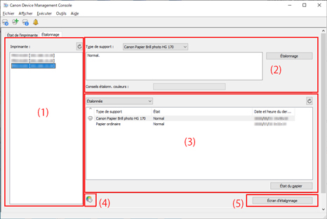 s'affiche pour le papier affiché dans Type de support de la "(2) Zone d'exécution de l'étalonnage des couleurs".