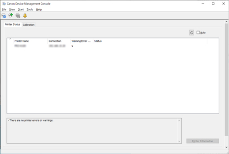 Registre a impressora em relação à qual você deseja verificar o status da impressora ou o status de execução da calibração de cor.