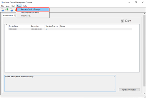 A caixa de diálogo Configurações de serviço residente será exibida.