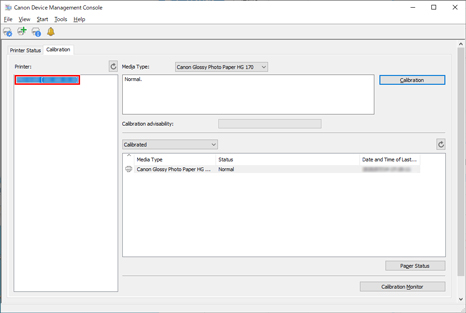 Quando você seleciona uma impressora que tenha sido definida para fazer periodicamente a calibração de cor,