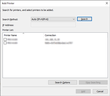 Выберите пункт Авто (IPv4/IPv6) для параметра Метод поиска, а затем нажмите кнопку Поиск.