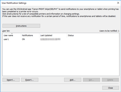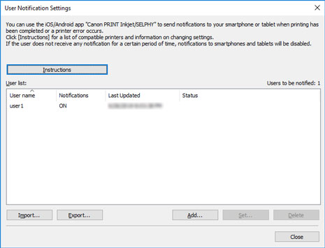 Примечание.- Нажмите кнопку Инструкции (Instructions) для отображения раздела "Отправка уведомления о задании печати или состоянии принтера на смартфон/планшет".