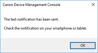 При появлении сообщения, которое было отправлено в предыдущем тестовом уведомлении, подтвердите, что на смартфоне параметры уведомлений были включены, а затем нажмите кнопку OK.