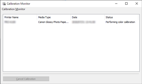 Отображается состояние выполнения калибровки цвета.