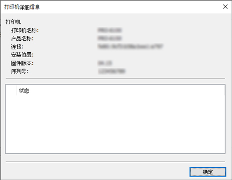 按钮显示打印机详细信息对话框,可以检查打印机的详细信息。