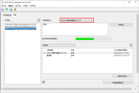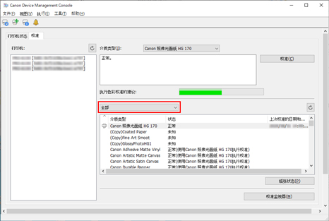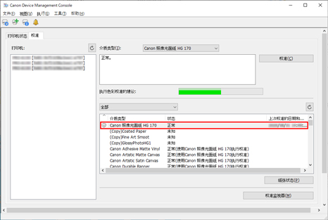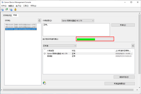 可以检查每种纸张的色彩校准执行日志。