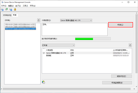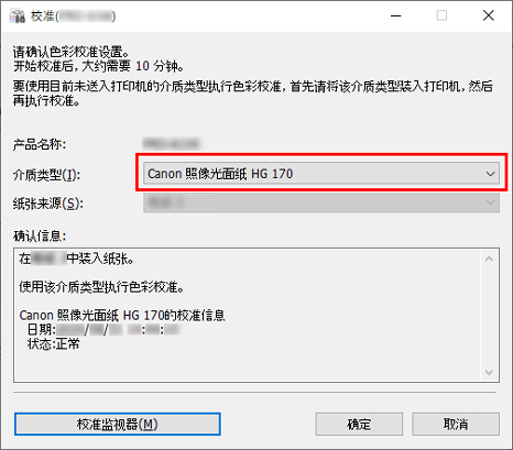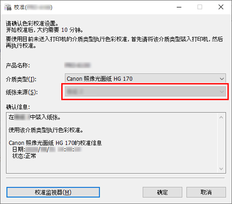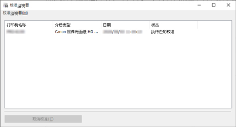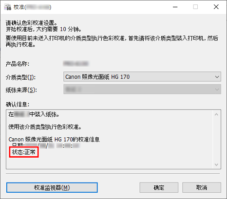 根据所用型号的不同,对于通过USB连接的打印机,无法通过关闭此对话框后显示校准监视器对话框来检查其色彩校准的进度状态。
