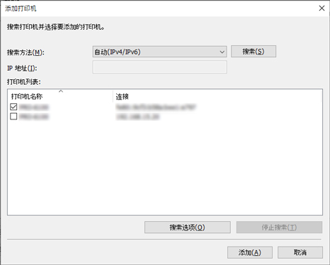 搜索IPv4和IPv6打印机。