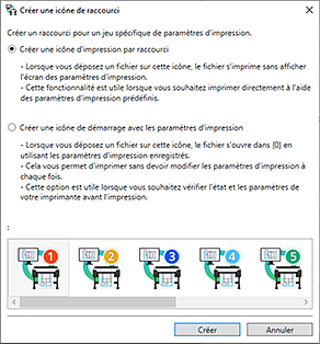 Utilisez la procédure ci-dessous pour créer des icônes d'impression par raccourci.