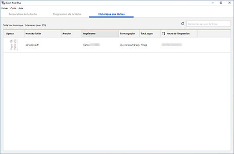 L'élément d'historique sera ajouté à la liste des travaux à imprimer.