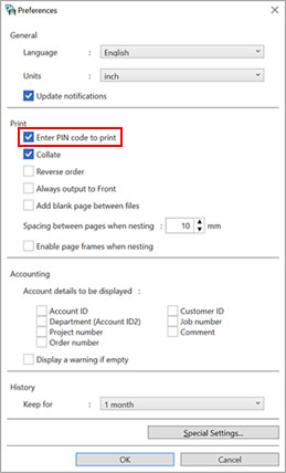 Aggiungere un segno di spunta a Immetti codice PIN per stampare (Enter PIN code to print).