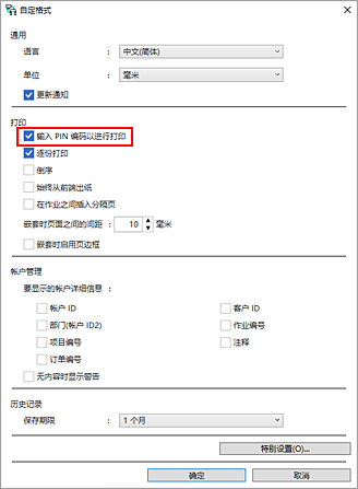 在打印机操作面板上输入PIN码后进行打印。 此操作可以防止打印材料混淆。