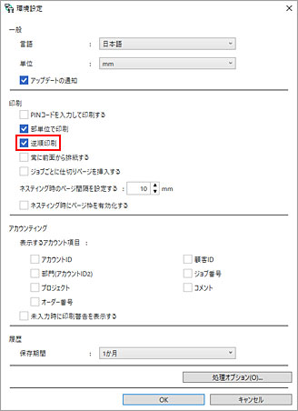 印刷面が表になって排紙される排紙口を選んだ場合、最初のページが一番下になり、ページの順番が逆になります。[逆順印刷]を選ぶと、ページの並べ替えが不要になります。