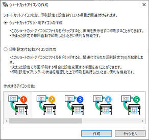 ショートカットプリント用アイコンを作成するには、以下の手順を行います。