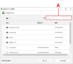 参考- 文字を入力して、フォルダーやファイル名を検索することができます。(A)の部分に文字を入力すると、入力した文字列が含まれるフォルダーやファイルが表示されます。