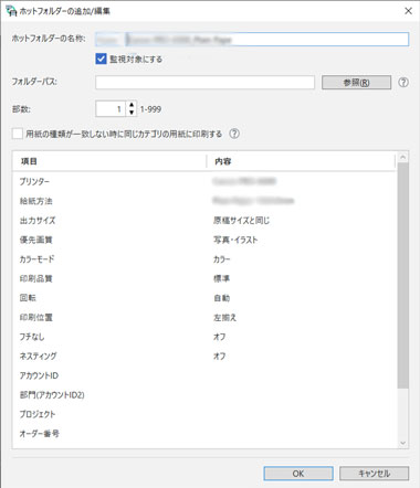 [ホットフォルダーの追加/編集]ダイアログが表示されます。それぞれ設定をしてください。
