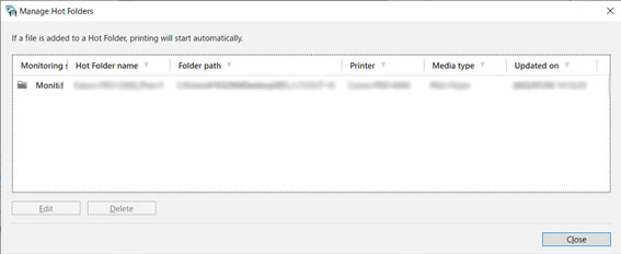 핫폴더 관리(Manage Hot Folders) 대화 상자가 열립니다.
