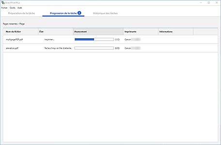 - Vous pouvez sélectionner Annuler dans le menu affiché en cliquant avec le bouton droit de la souris pour arrêter l'impression.