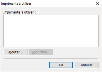 Assurez-vous que l'imprimante que vous avez sélectionnée dans la boîte de dialogue Imprimante à utiliser a été ajoutée, puis cliquez sur le bouton OK.