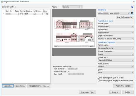 Modifiez les paramètres selon les besoins dans la zone des paramètres d'impression située à droite. (Reportez-vous à « Écran principal »)