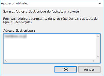 Il est possible de saisir plusieurs adresses électroniques. Si vous saisissez plus d'une adresse électronique, séparez-les à l'aide d'un saut de ligne ou d'une virgule.