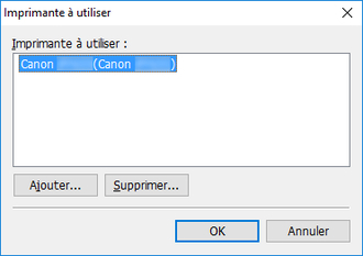 Cette boîte de dialogue vous permet d'ajouter et de supprimer des imprimantes du menu déroulant Imprimante sur l'écran principal.