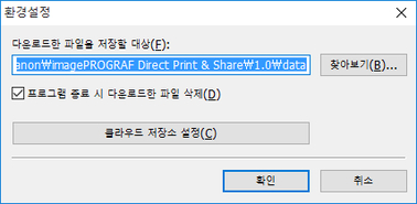 클라우드 저장소 정보 대화상자가 표시됩니다.