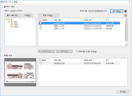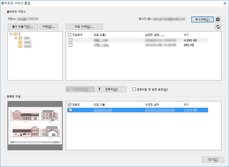 등록된 파일 목록에서 업로드할 파일의 업로드 확인란을 선택합니다.
