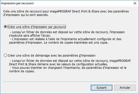 Suivez la procédure ci-dessous pour créer des icônes d'impression par raccourci.