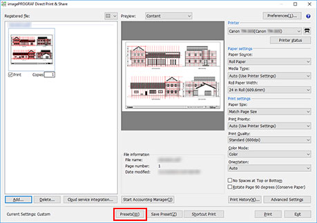 Verrà visualizzata la finestra di dialogo Preimpostazioni.