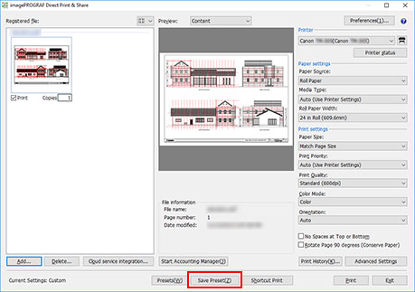Fare clic su Salva preimpostazione.