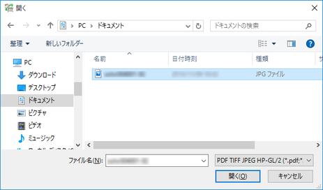 印刷したいファイルを選び、[開く]をクリックする