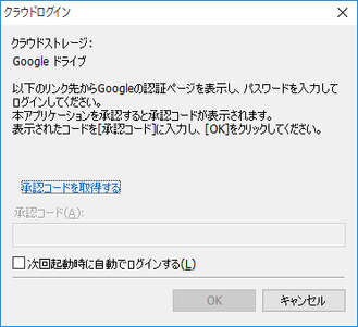 表示されたコードを[クラウドログイン]ダイアログボックスの[承認コード]に入力する