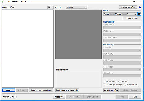 As impressoras a serem utilizadas no Direct Print & Share devem ser registradas no menu suspenso Impressora (Printer).