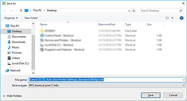 Ein Direktaufrufdrucksymbol wird im angegebenen Ordner erstellt.