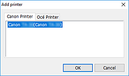 Le stampanti con driver installati sul PC sono elencati nella scheda Stampante Canon (Canon Printer). Per aggiungere una stampante all'elenco della scheda Stampante Canon (Canon Printer), installare il relativo driver sul PC.