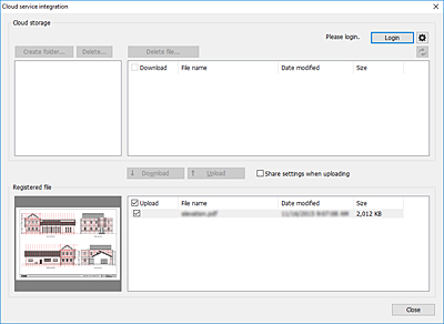 Файлы, которые вы хотите передать в облачное хранилище данных, необходимо добавить в список Зарег. файл (Registered file). (См. раздел "Добавление файлов для печати").