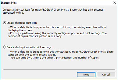 - Создать ярлык запуска с настройками печати (Create startup icon with print settings)