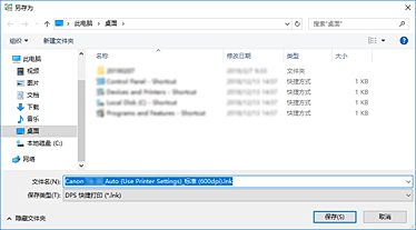 创建的图标会添加到“另存为”对话框中指定的文件夹中。