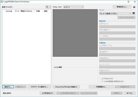 Direct Print & Shareで使用するプリンターは、[プリンター]プルダウンメニューに登録します。