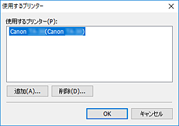 [使用するプリンター]ダイアログボックスに、選んだプリンターが追加されていることを確認し、[OK]をクリックする