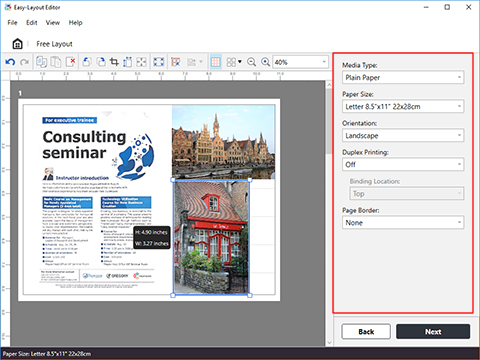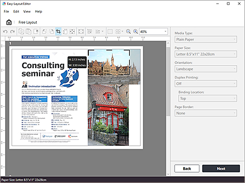 Ändern Sie die Größe und Anordnung von Bildern ganz nach Ihren Vorstellungen und schneiden Sie Bilder zu, um nur den benötigten Ausschnitt zu drucken.
