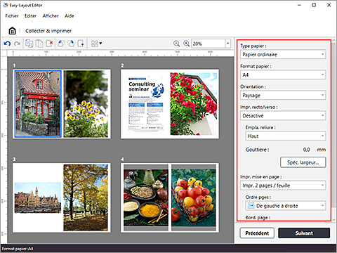 Vous pouvez organiser de nombreuses données sur une seule page en vérifiant l'aperçu et configurer des paramètres tels que l'impression recto verso.