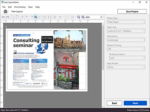 Modificare la dimensione e la disposizione delle immagini in base alle preferenze e ritagliare le immagini per stampare solo la parte necessaria.