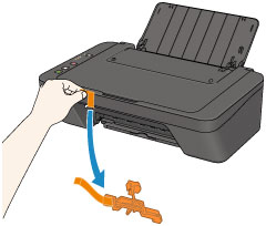 Ако предпазният материал или лепенката все още са там, приберете удължението на изходната тава и изходната тава за хартия, за да ги отстраните.