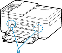 • Има ли останала хартия в лявото и дясното празно пространство (B) на принтера?